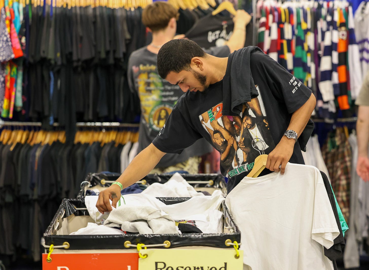 Beyond the panels, the Thriftcon marketplace itself reflects this influence, with racks of vintage rap tees, sportswear, and bold graphics filling the space.